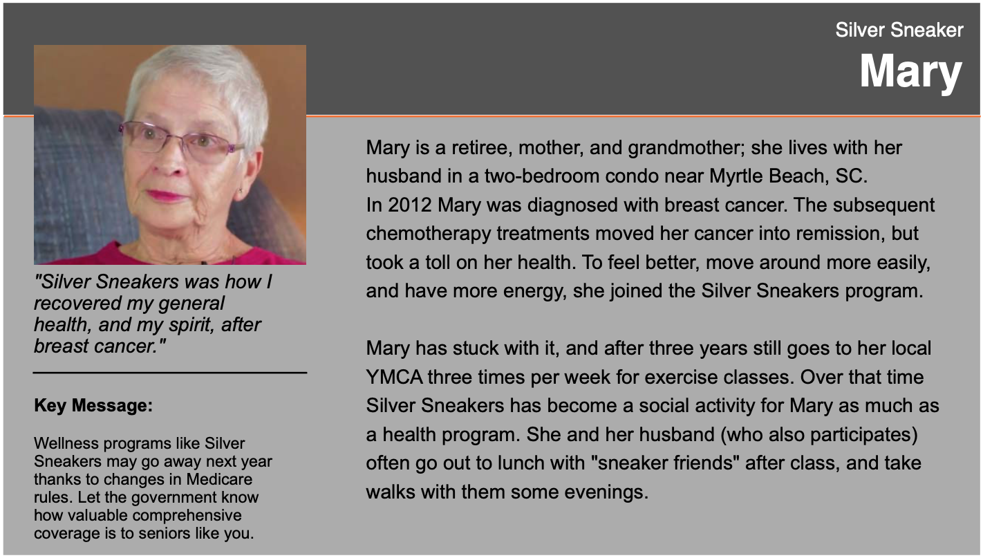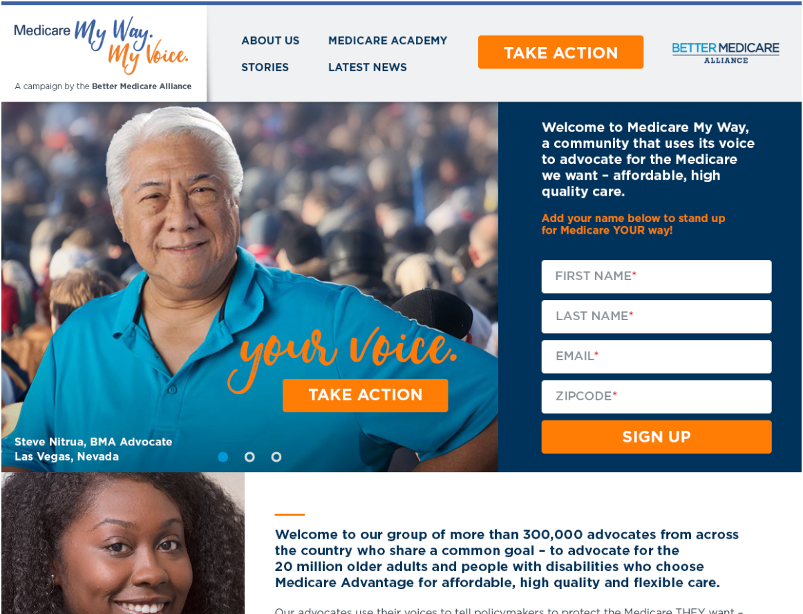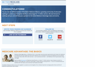 The Better Medicare Alliance (BMA) needed to build public and political support to protect federal funding for Medicare Advantage—a privately administered, government-funded Medicare option that offers seniors additional benefits like fitness memberships and wellness programs. Our challenge was to engage seniors nationwide and mobilize them to influence Congress and the Centers for Medicare & Medicaid Services (CMS) at key moments.